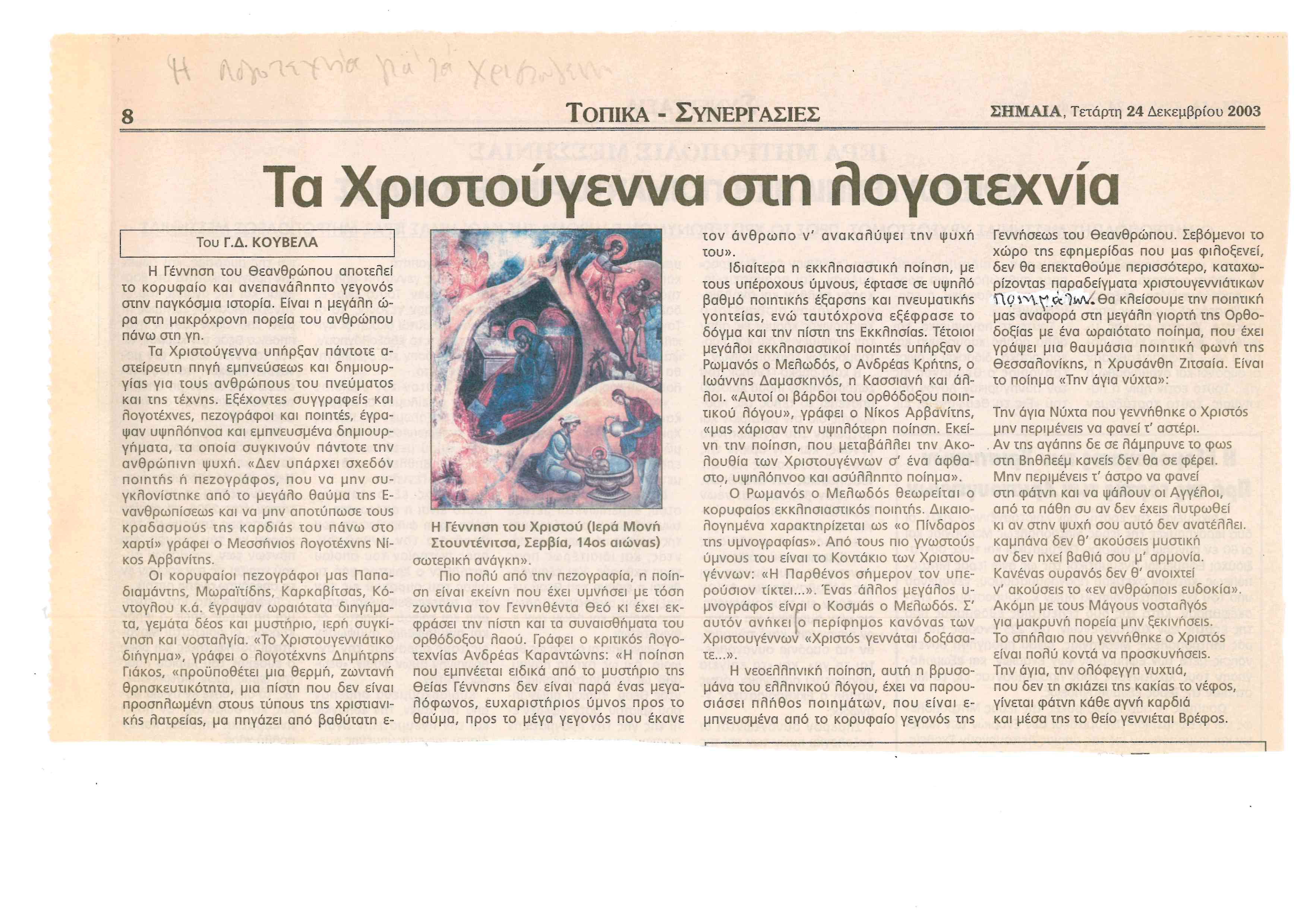 ΤΑ ΧΡΙΣΤΟΥΓΕΝΝΑ ΣΤΗ ΛΟΓΟΤΕΧΝΙΑ
